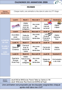 Les activités du mois